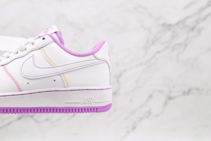 Between the indigo and pomegranate themes, the Nike Air Force 1 is offering a new Spring-appropriate kids exclusive. As if made specifically for Easter, the pair adorns near all of its stitching with many a vibrant pastel. The toe cap flaunts a bright pink atop its white layers, while the backside of the mid-panel prefers a more warm-dominant yellow. Violet, then, touches up in between, dressing the edges of the Swoosh as well as the eye stays. Further use of this purple extends elsewhere alongside — specifically, the lining and tread. Nike Air embroideries and mini checks finish in a louder hot pink, while the base construction retains the AF1s most signature all-white look.