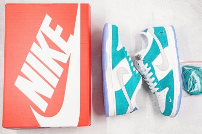 Collaborating with Nike on the Dunk, Kasina relays its story — from humble beginnings in Busan, South Korea’s second-largest city, to opening multiple doors in the country’s capital megalopolis, Seoul. The two colorways of the Dunk Kasina both reference travel through Korea. The Neptune Green colorway explicitly pulls from the signage that lines the Gyeongbu Expressway, the main highway between Busan and Seoul. During the mid-’80s, the same period the Dunk was introduced, Seoul experienced a population boom. This growth, symbolized by travel across Korea’s highways, underpins the Kasina journey. Busan and Seoul are written on the left and right heel tabs respectively.