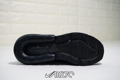This sneaker features features a triple black leather upper with swooosh ,air max 270 branding logo attents,as well as white dot placed on front sole.