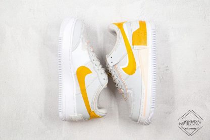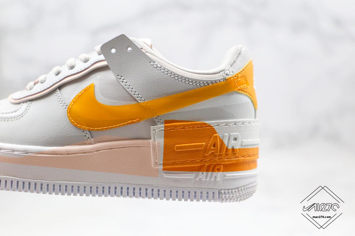Swoosh adds vibrant “Pollen Rise” accents to the Air Force 1 Shadow. Inherently bold, the latest women’s Air Force 1-variant isolates its statement-making to the signature details. Layered profile Swooshes, heel tabs, tongue labels and midsole tooling all sport the citrus hue. Elsewhere on this Air Force 1 Low, the color wheel remains on a warm weather-appropriate palette, most prominently seen across the model’s “Vast Grey” leather overlays. Furthermore, “Washed Coral” hits at the lace dubraes, bottom eyestays and midsoles complement the aforementioned bright orange, particularly on the otherwise colorless bottom-halves.