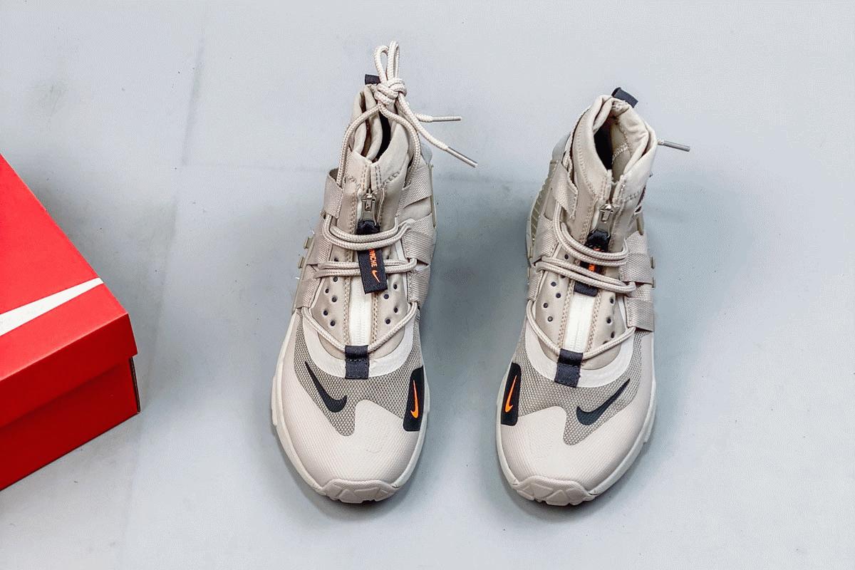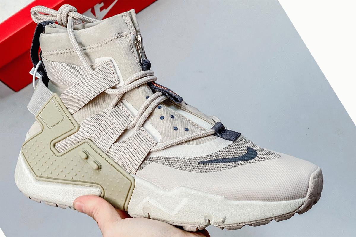 The Nike Air Huarache Gripp was first introduced with a shroud, and it’s now previewed without it for its next iteration this season. Featured in a tonal sail theme, the weather-resistant model is highlighted with an extended inner bootie covering the ankle, a detachable shroud that is not pictured, and an outer bootie that can be zipped on and off. The shoe also features a utility style with its aggressive traction pattern and thicker webbing to handle the thicker rope laces.