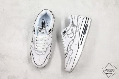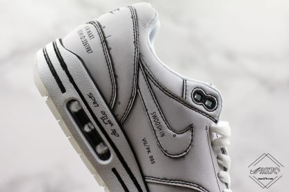 After an Air Max 1 Sketch appeared earlier this week, Nike is back again with another work-in-progress take on the 1987 classic: the “Schematic.” As the Tinker Hatfield-designed shoe was the first Swoosh Brand silhouette to bring visible Nike Air to market, these Air Max 1 releases are exploring different parts of the process of creation, and the “Schematic” nods to the shoe’s line work/construction, with a white-and-black colorway that looks as if it was lifted directly off a piece of sketching paper in Hatfield’s notebook. It also calls to mind the popular work of artist Joshua Vides, who presented Hatfield with a special hand-painted white and black Air Jordan 3 during NBA-All Star Weekend 2018. Each line of stitching or indented/embossed detailing is highlighted with black detailing either thin or bold, while plenty of technical notes appear on each leather panel, giving you a hands-on look at what brought these Nike shoes together. The sockliner also nods to the overall sample-like nature with a text hit that reads “Schematic, Property Of Nike, Not For Resale.”