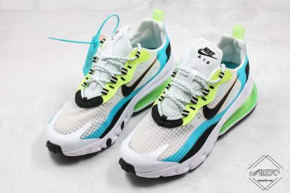 Further pops of black are present on the tongue branding and flecked laces, while midsoles are split between white React foam in the forefoot and a “Ghost Green” Air Max 270 cushioning unit in the heel. Black rubber lugs and plugs on the outsole complete the look.