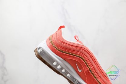 Since early spring, Nike has been unveiling a garden of plant-themed, eco-conscious footwear that alludes to botany textbooks and incorporates recycled materials. The Nike Air Max 97, for instance, has been previewed to rep the cork plant in “Coconut Milk” and “Obsidian” colorways. Cork vibes prevail on an upcoming AM 97 arrangement but in a rather vibrant coral makeup. Unlike the aforementioned styles, a single color dominates the recycled canvas upper on this pair. Even the signature wavy overlays and the overlay above the midsole exhibit the peachy coral shade. To offset the bright hue, white is applied to the inside, midsole, and embroidered Swooshes on the sides and the tongue. An embroidered cork plant is emblazoned down the tongue and features textbook-styled text that reads “Fig 6. Cork.” The plant theme continues with one of the wavy overlays and the outsole comprising cork materials for an organic look that directly derives from nature itself.