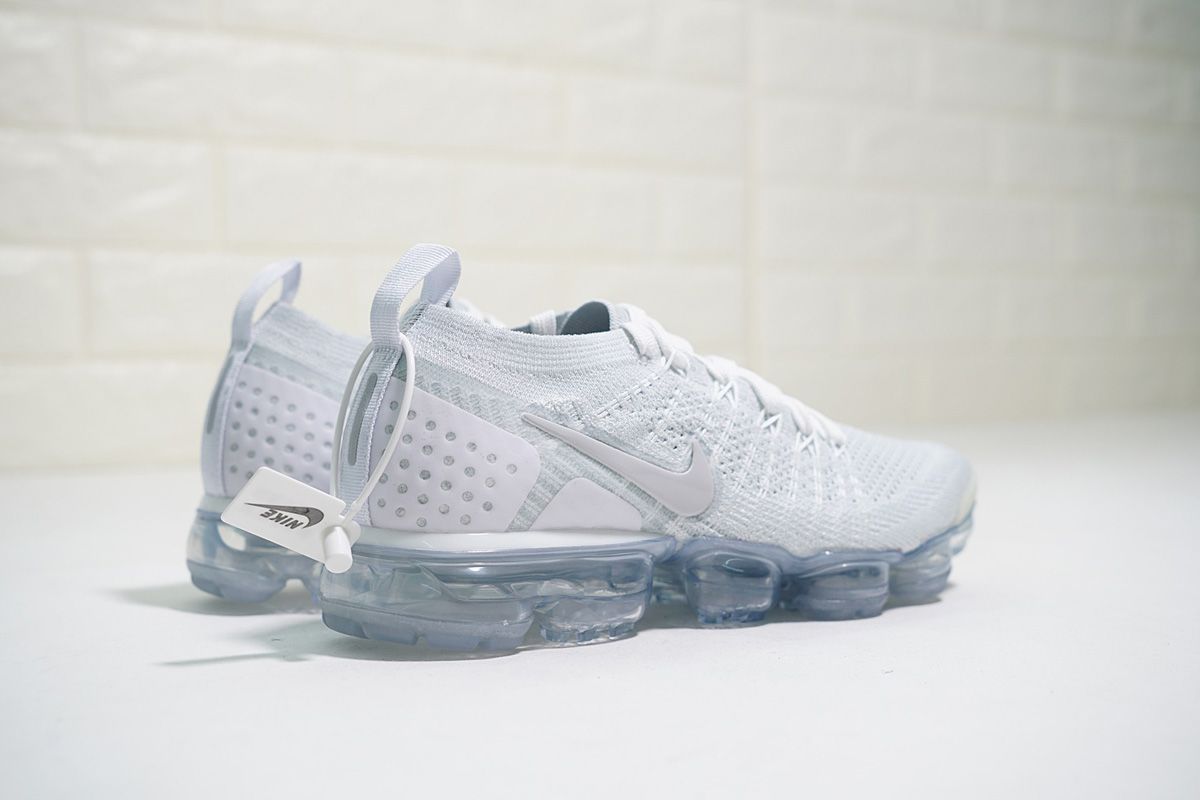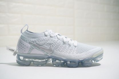 This Nike Air VaporMax 2 comes in white, vast grey and football grey. Sporting a white-based Flyknit upper with grey accents and a full translucent VaporMax cushioned sole.
