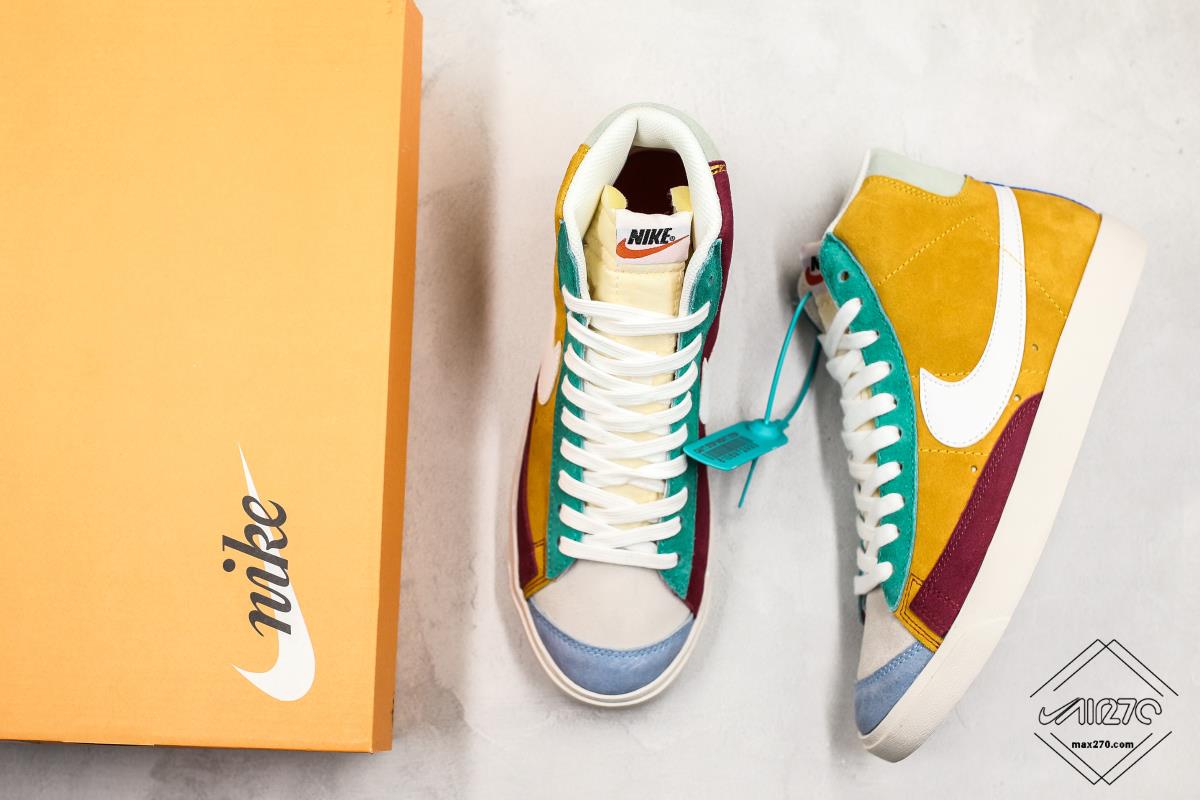 The Nike Blazer Mid ‘77 Vintage “Multicolor Suede” is the classic silhouette in a vibrant multicolor look. The Blazer Mid in its construction that is designed to resemble vintage pairs from the late ‘70s receives an all-suede upper in shades of yellow, red, green, white, light blue, and royal. The color block also features an asymmetrical treatment with yellow panels on the lateral side and red panels on the medial side.