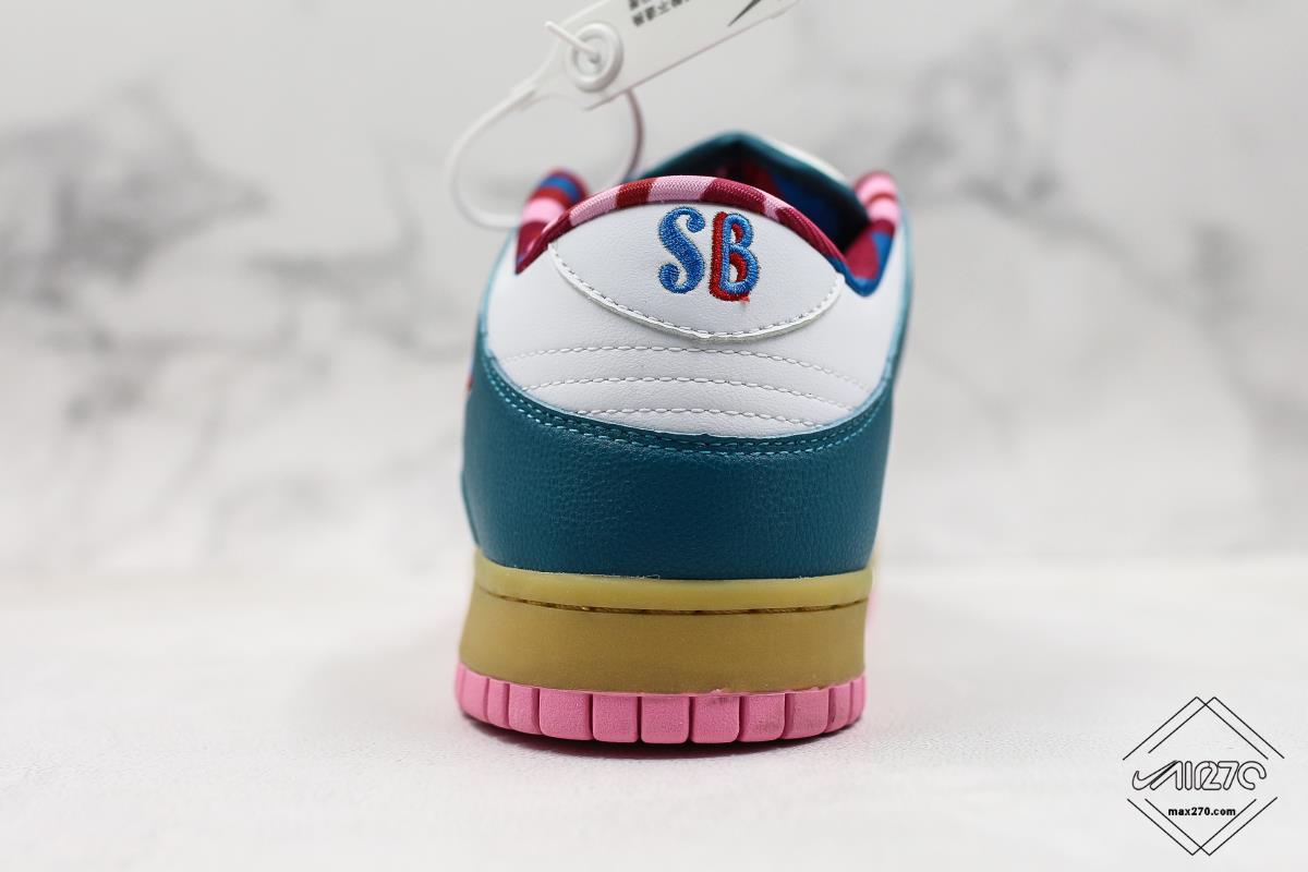 Teaming up with the Dutch artist in July 2019, Nike SB and Parra present a special collaboration of the iconic Dunk Low OG QS. The visual artist’s whimsical style is interpreted via multicolored chenille Swooshes on the leather upper and a graphic sockliner. A patterned tongue label and alternating co-branding embroidered on the backstay recognize both entities.