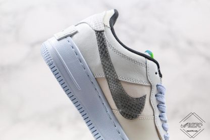 Considering the nature of its multi-layered constructions, Nike’s Air Force 1 Shadow for women is certainly one that has capabilities of toying with its look its various ways, and is a true reflection of organized chaos. Throughout its time on the market we’ve seen the lifestyle silhouette take on a wide array of new color schemes, and even slap on some retro-styled patches, but for the first time ever we’re seeing a modification in material of its Swoosh logos. Reptilian character is now employed as snakeskin fabrics wrap Carolyn Davidson’s iconic logos, and are outfitted with a gunmetal finish. Cooler tones aplenty are present throughout the rest of its look, as the upper mixes two different shades of grey, and the bottoms, a muted baby blue. More evidence of vibrant contrasting can be credited to its laces which adapt to a “UNC” hue, followed by highlighter yellows that sprinkle onto the tongue and Nike Air branded footbeds.