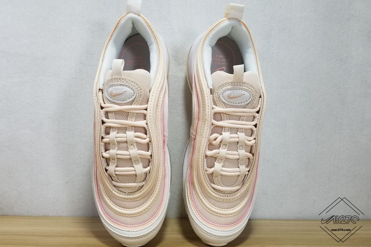 This Guava Ice WMNS version of the AM 97 features a rose leather & mesh upper on top of a white sole unit, giving the iconic silhouette a super clean look. The futuristic, flowing design of the AM 97 with its huge continuos air bubble is inspired by the look of the Japanese highspeed bullet trains and belongs to the most iconic designs of the Air Max series.